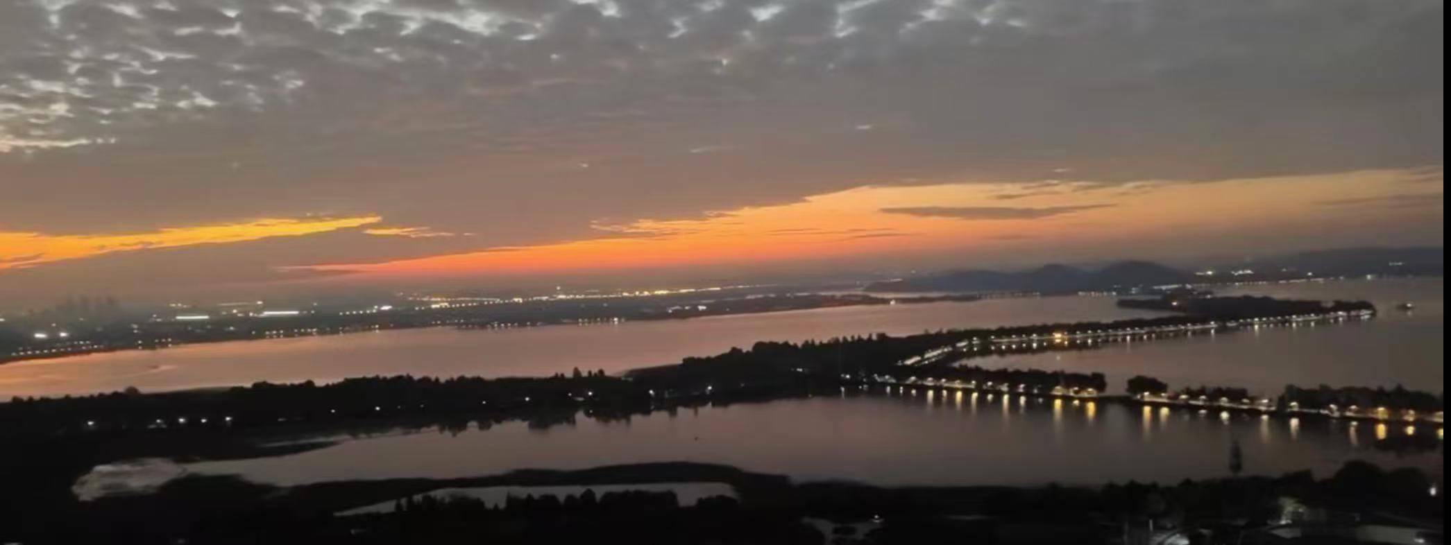 “哇哦,nice。”清晨6时,汤先生在东湖畔尽享朝霞大片。