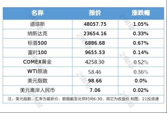 纽约股市三大股指12月10日上涨。截至当天收盘,道琼斯工业平均指数比前一交易日上涨497.46点,收于48057.75点,涨幅为1.05%;标准普尔500种股票指数上涨46.17点,收于6886.68点,涨幅为0.67%;纳斯达克综合指数上涨77.67点,收于23654.16点,涨幅为0.33%。
